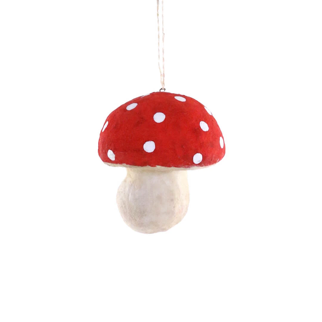 Cotton Mushroom Ornament, Spun Cotton, 3.5″