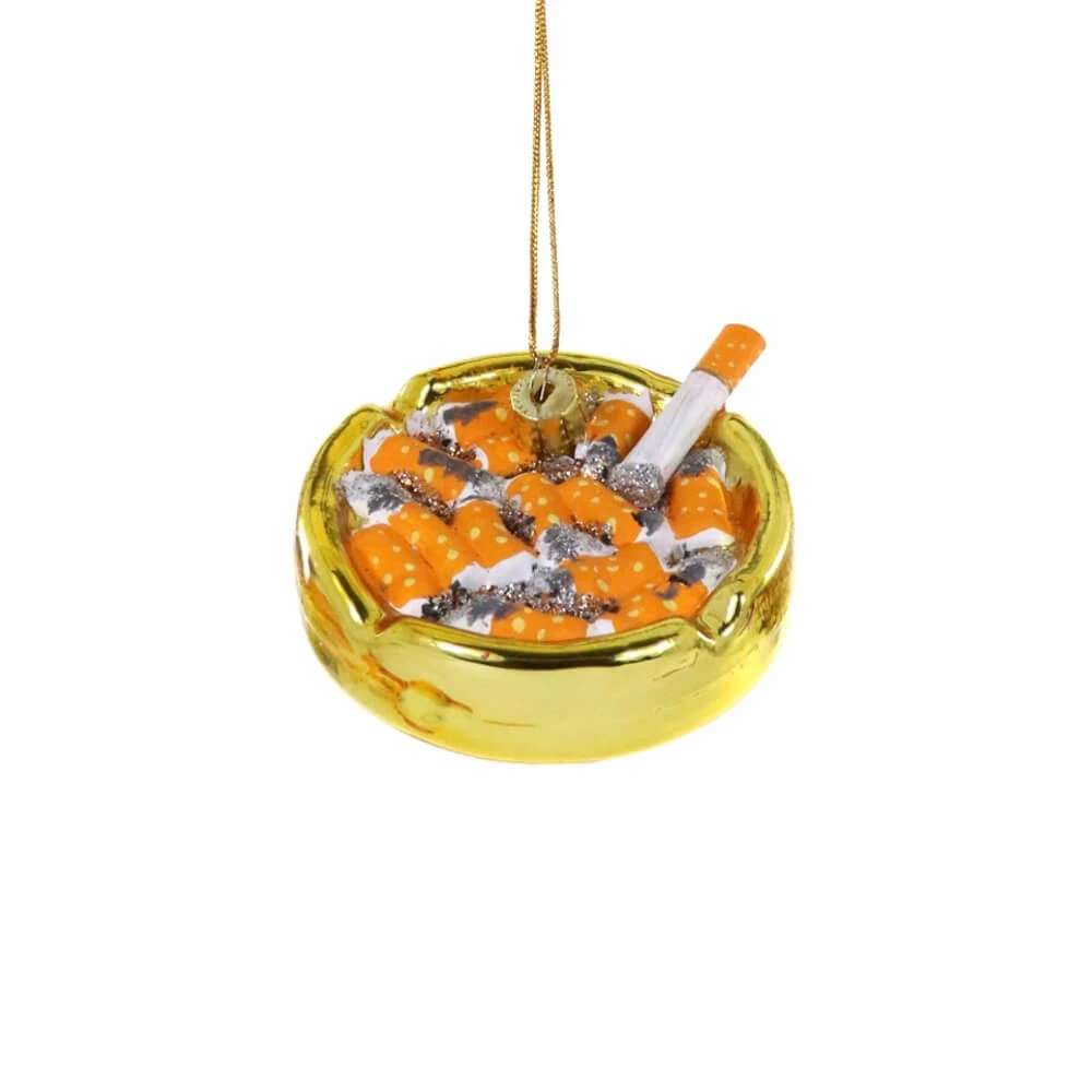 Gold Ashtray Cigarette Holder Ornament, Glass, 2.75″