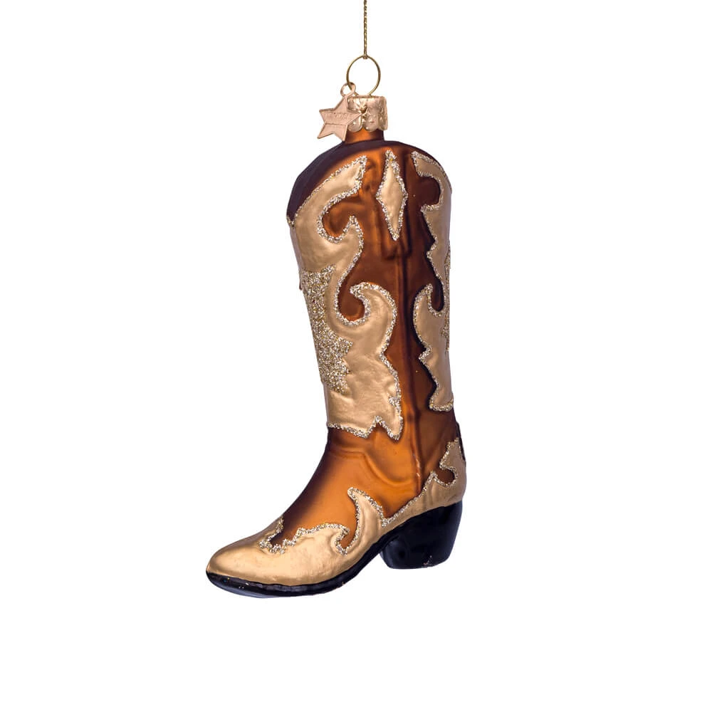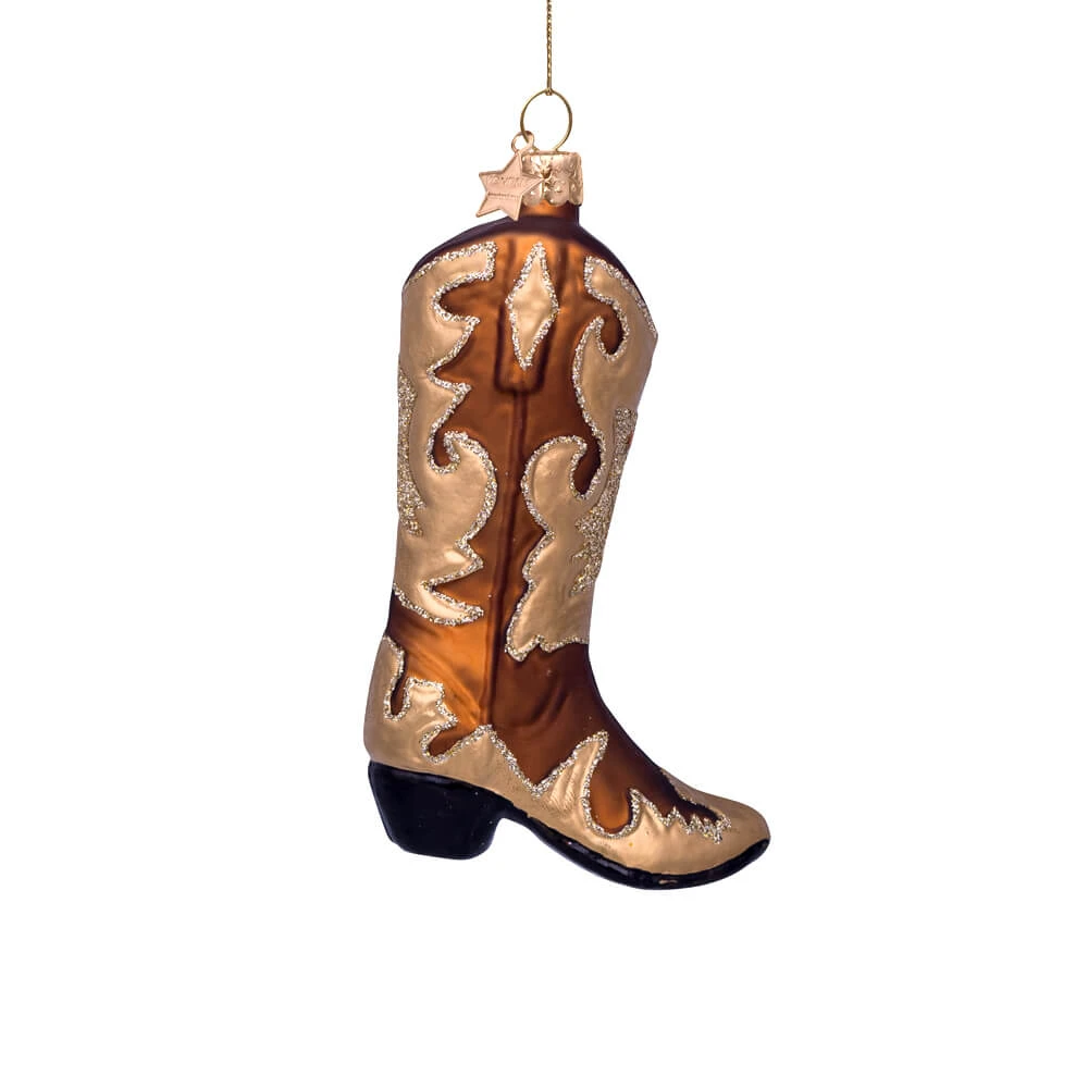 Brown w/ Gold Glitter Cowboy Boot Ornament, Glass, Approximately 4.75″HÂ