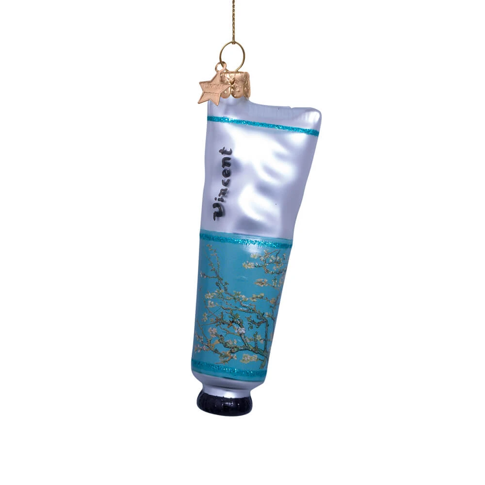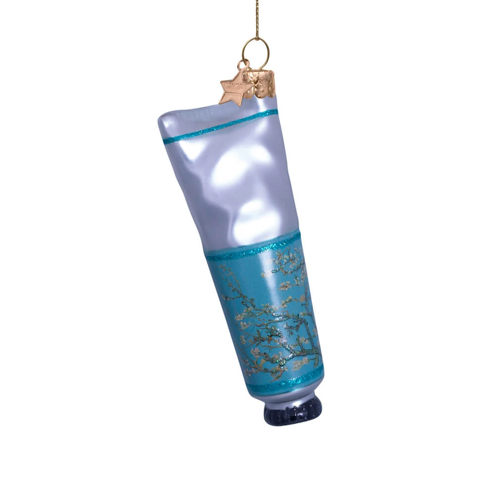 Van Gogh Blossom Blue Paint TubeOrnament, Glass, Approximately 4″HÂ